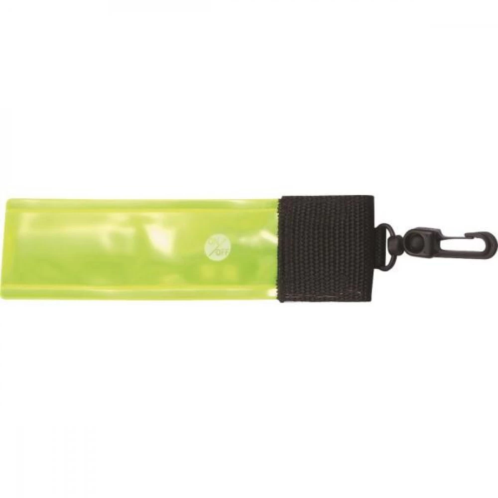 Bande réfléchissante fluo CAO OUTDOOR pour randonnée ou camping avec LED clignotante et mousqueton pour accrocher la bande partout : sac, vêtement ou vélo !