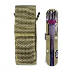 – Poids : 160 g (housse incluse)- Dimensions : 23 cm- MatĂ©riau : couverts en acier inox trempĂ©- Fabrication Française