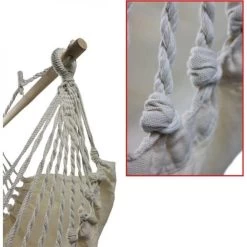 Hamac chaise position assise CAO OUTDOOR avec écarteur bois et tissu coton idéal pour le plein air au camping, en bateau ou camping-car.
