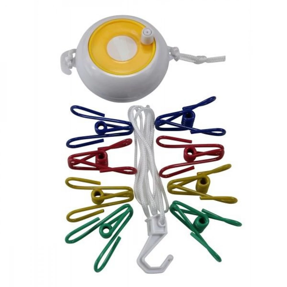 – Poids : 145 g- Dimensions : corde de +/- 5,70 mètres- Matériau : ABS- Enrouleur- 8 pinces à linges