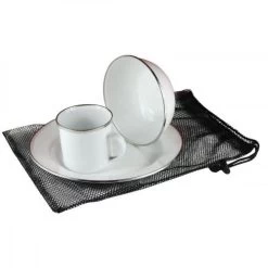 Set de 3 pièces de vaisselle CAO OUTDOOR pour le camping, randonnée ou bateau et camping-car : en tôle émaillée design « Vintage » !