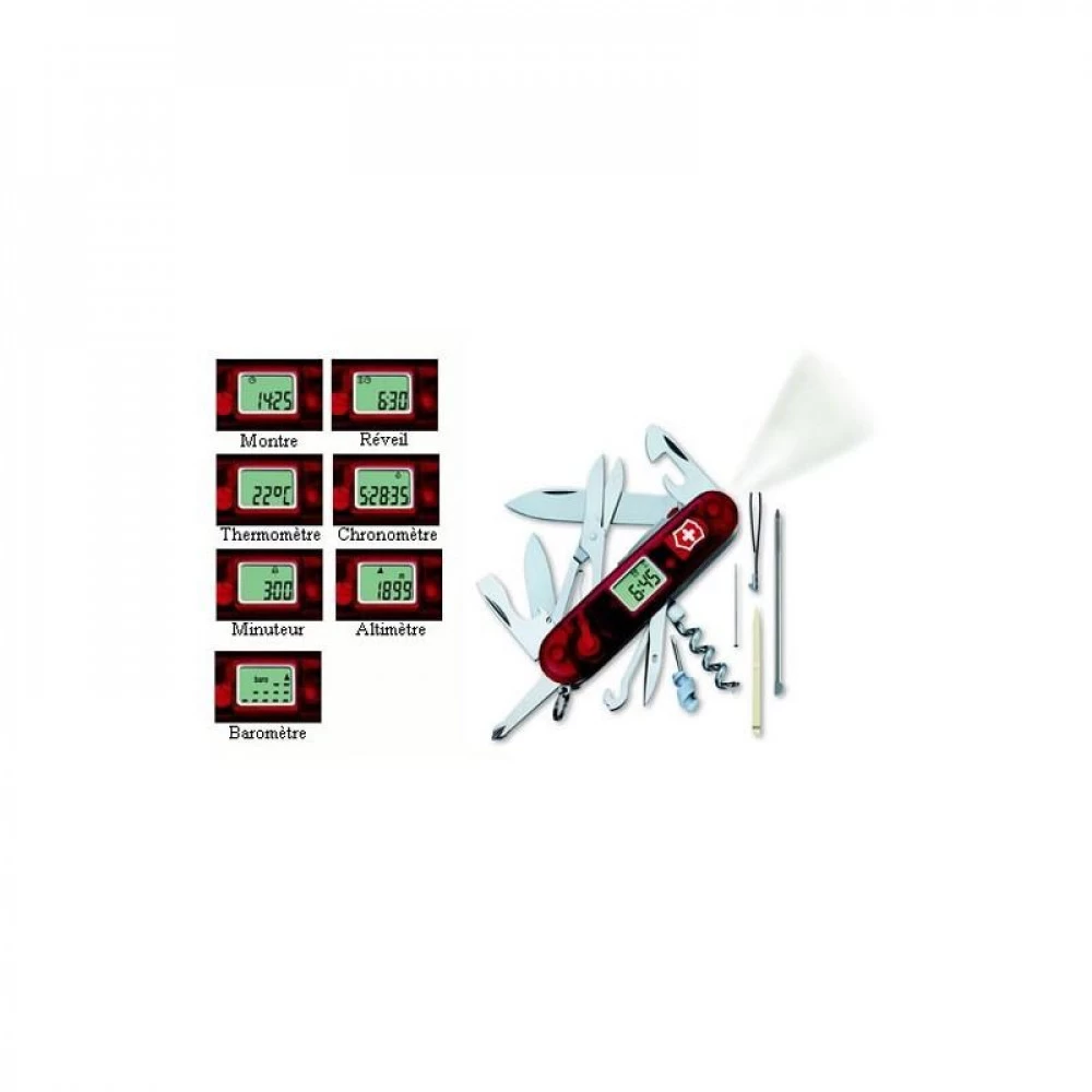 VĂ©ritable concentrĂ© du savoir-faire de Victorinox, le couteau suisse Traveller Lite prĂ©sente un manche de 91 mm et un Ă©ventail de 27 fonctions rĂ©parties sur 16 piĂšces. Il comporte des fonctions rares : altimĂštre, baromĂštre, thermomĂštre et lampe. Versatile, le Victorinox Traveller Lite se destine Ă l’aventure, au voyage au quotidien. Un cadeau original et utile, haut de gamme.