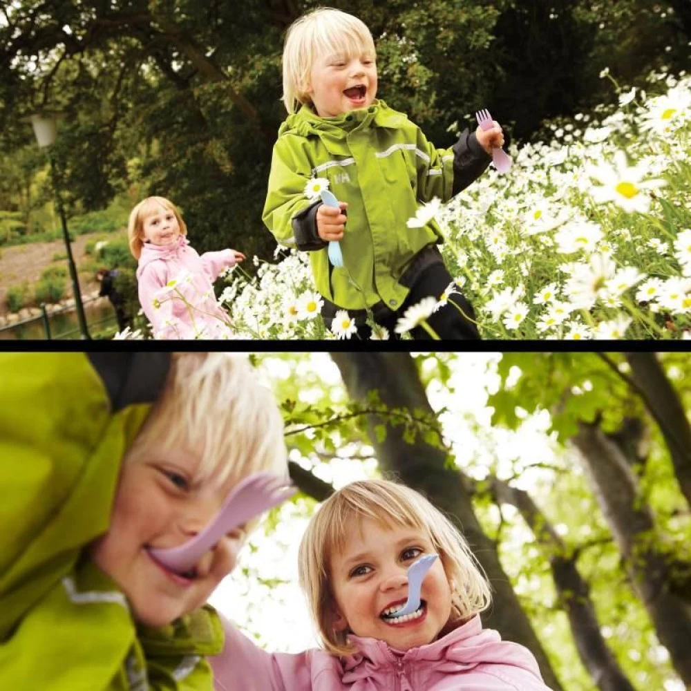 La cĂ©lĂšbre Spork de la marque Light My Fire existe en version enfant : il s’agit de la Spork Little, plus petite, plus Ă©paisse et plus ronde. Elle est vendue en pack de 3 avec trois couleurs diffĂ©rentes : 1 rose, 1 bleue et 1 jaune. IdĂ©ale pour les nourrissons et petites bouches, il n’y aucun bord coupant. IdĂ©ale en voyage, ses dimensions sont avantageuses : 140 x 31 x 16 mm. Poids unitaire : 8 g.