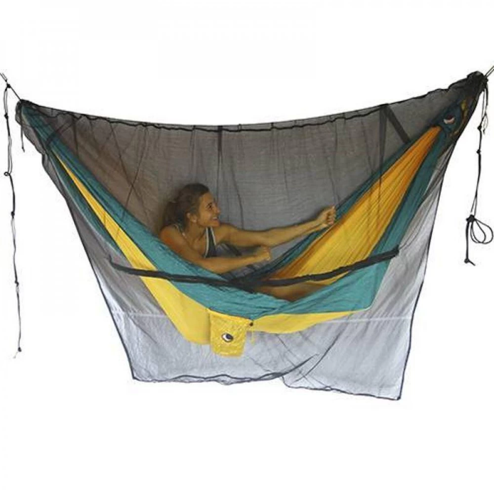 La moustiquaire de hamac Ticket To The Moon 360° ne laisse passer aucun moustique, aucun insecte : la protection ultime dans le cadre d’un bivouac avec hamac. Cette moustiquaire est compatible avec les hamacs pour 1 ou 2 personnes, toutes marques confondues. Elle est de forme cocon et entoure totalement votre hamac, sans barre contraignante. Poids : 450 grammes. Maillage fin : 81 trous par cm2.