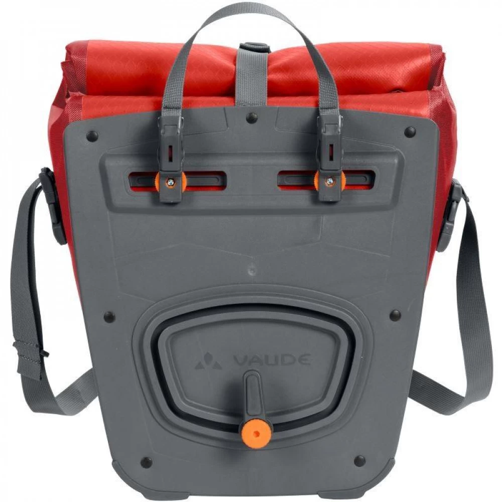 Idéale pour voyager en vélo et bien étanche, la sacoche Aqua Front de Vaude est la sacoche vélo ultime de roue avant. Elle est livrée par lot de 2 : ainsi, on peut installer une sacoche de roue à droite et une sacoche de roue à gauche pour l’équilibre du vélo et une capacité de portage maximale. L’installation est très facile : fixation QMR 2.0. Poids : 1580 g. Dimensions : 31 x 30 x 17 cm.