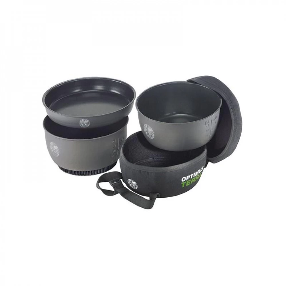 Le set de cuisson Optimus Terra HE est une popote optimisĂ©e intĂ©grant 5 Ă©lĂ©ments dont une housse en nĂ©oprĂšne, une poignĂ©e, deux casseroles graduĂ©es et une poĂȘle Ă frire. La poĂȘle et les casseroles sont en aluminium dur anodisĂ©, matiĂšre anti-adhĂ©sive et antichocs. La grande casserole dispose dâun systĂšme dâoptimisation de la cuisson. Un achat idĂ©al pour les expĂ©ditions, bivouacs et treks.