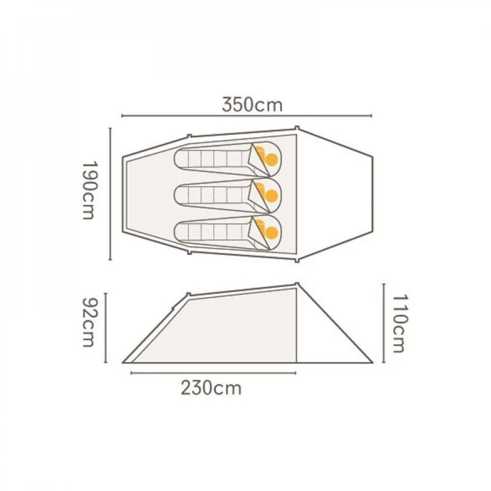 Imperméabilité : 3000 mm (toit) / 10000 mm (sol)