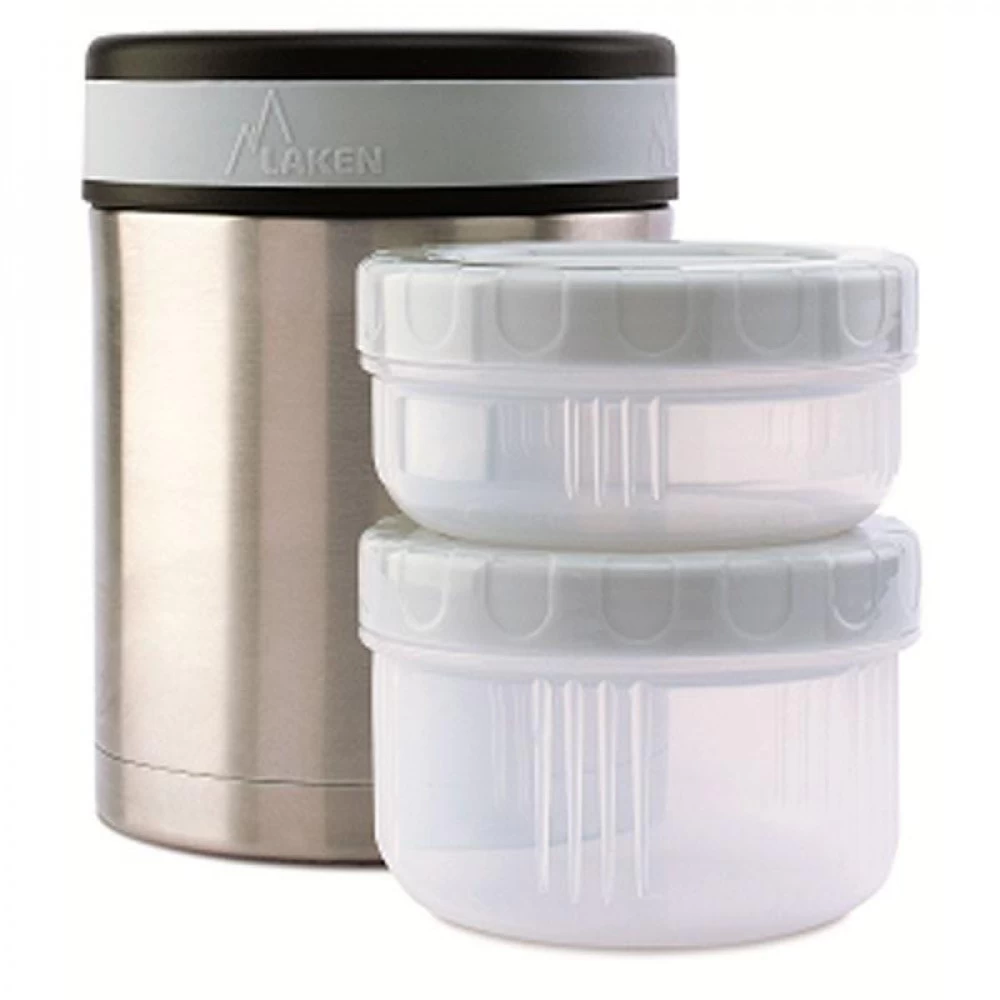 Le Thermo pour aliments Laken 1 litre est la boîte alimentaire isotherme ultime pour la randonnée. Cette boîte alimentaire isole le chaud jusqu’à 10 heures et le froid jusqu’à 24 heures. Elle est en inox avec double paroi et vide d’air. Son poids : 760 grammes. Elle contient 2 récipients pour bien compartimenter vos aliments : l’un de 250 ml et l’autre de 375 ml. Taille du Thermo : 200 x 140 mm.